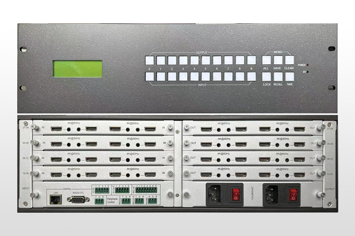 1. 采用嵌入式架構(gòu),無操作系統(tǒng),最大支持16X16路HDMI/DVI-I/VGA/YCBCR/CVBS/SDI/HDBaseT/LC單模單纖光纖信號(hào)輸入、HDMI/DVI-I/VGA/YCBCR/CVBS/SDI/HDBaseT LC單模單纖光纖信號(hào)輸出;