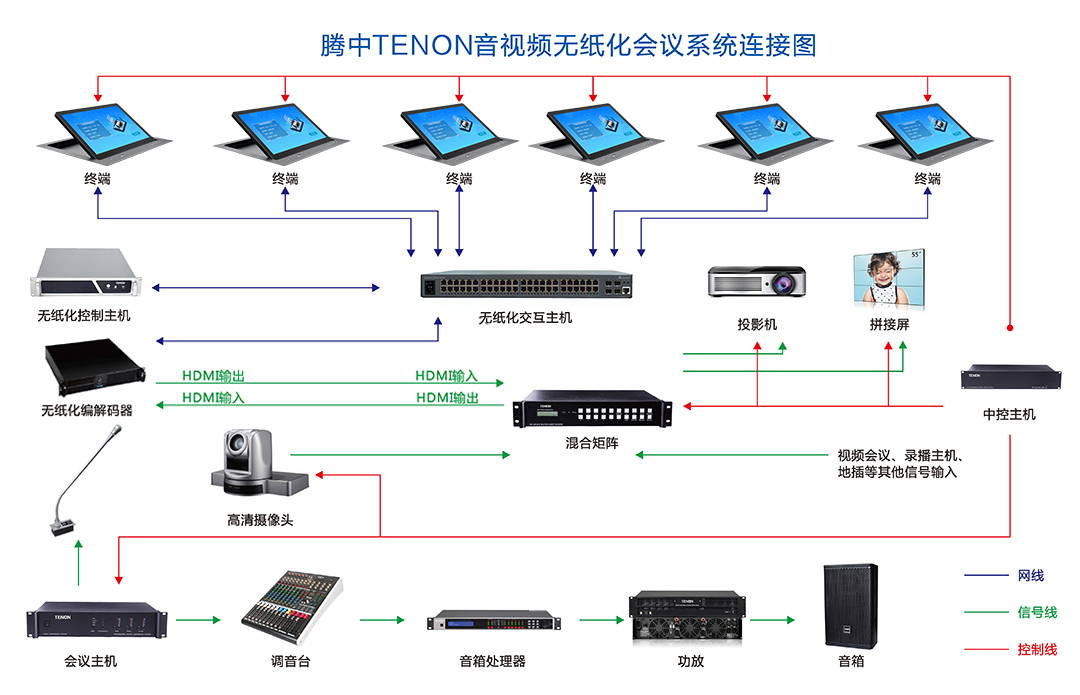 ?配套無紙化會議終端、無紙化控制主機、無紙化編解碼器、無紙化交互主機、會務(wù)呼叫系統(tǒng)、信息發(fā)布系統(tǒng)、無紙化會議控制及多信號交互系統(tǒng)可實現(xiàn):文件智能分發(fā)、會議同屏互動演示、外部信號到終端顯示、終端任意畫面上大屏幕、會議服務(wù)、會議投票、會議交流、交互式電子白板、會后保存、會議多信號處理、會議設(shè)備集中控制等功能;