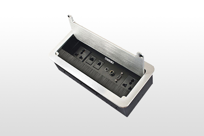?掀蓋式帶毛刷桌面插座,使用時蓋子可以合閉,插線由毛刷處伸出。