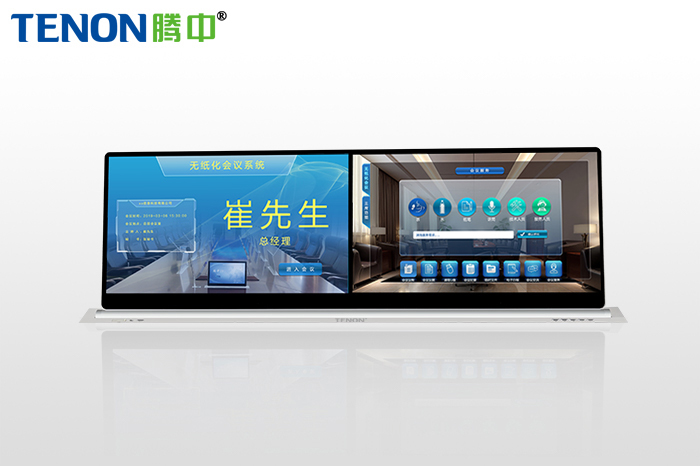 液晶升降器,液晶屏升降器,無紙化顯示屏,超薄圓軸式IPS電容觸控屏升降隱藏系統(tǒng),屏體外殼采用高端鋁合金一次成型工藝,背板無螺絲孔位,支持全屏觸控。在Windows/Android操作系統(tǒng)下嵌入騰中TENON無紙化會(huì)議系統(tǒng)軟件,可滑屏、拖動(dòng)、縮放、修改、查看會(huì)議資料等。采用Multi-Touch多點(diǎn)觸摸技術(shù),任何一點(diǎn)可承受大于50萬次的觸摸。 雙15.6寸液晶升降器,超薄單面升降一體機(jī),搭載超薄雙15.6寸觸摸液晶2K屏拼接屏