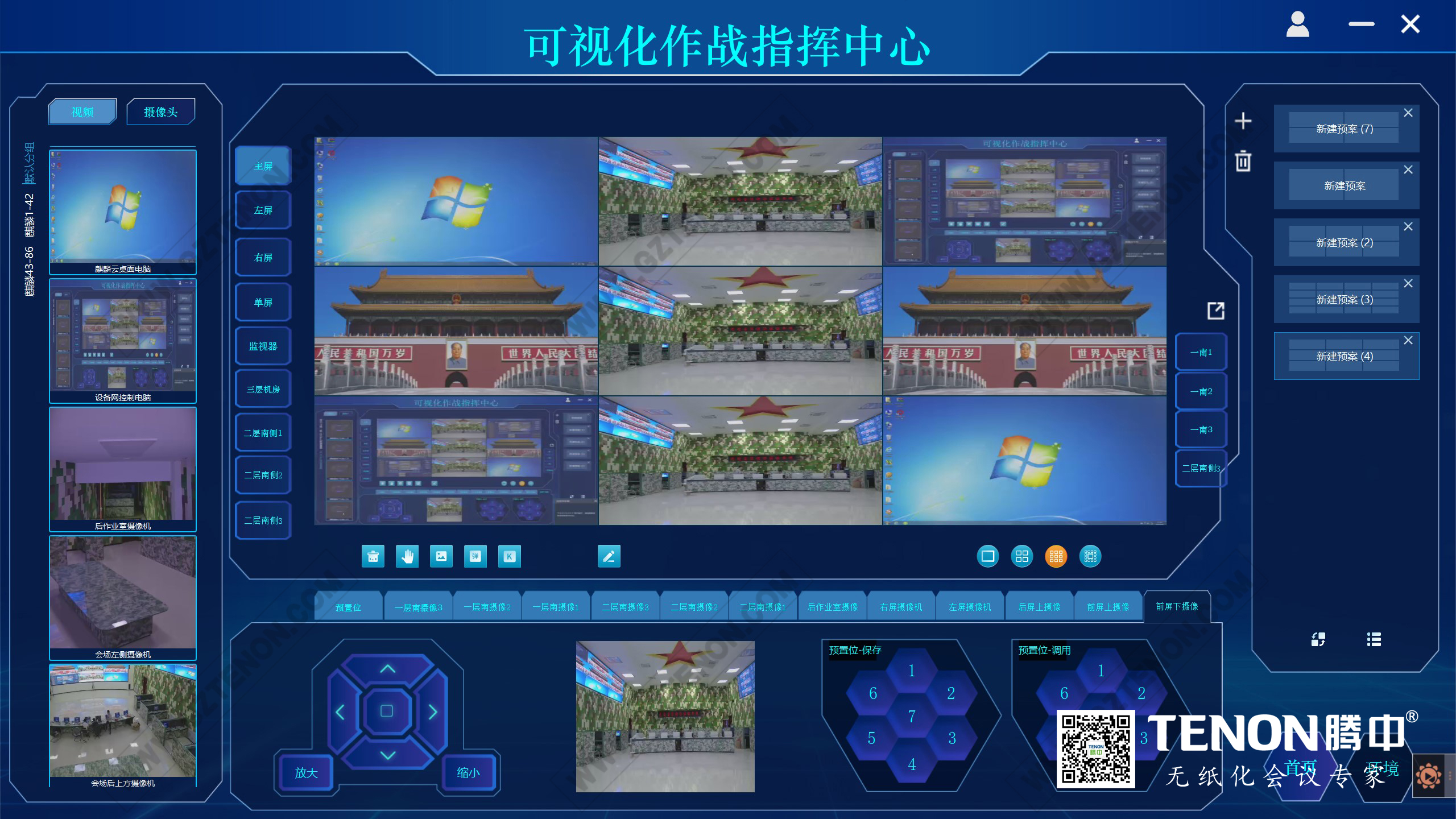 3. 無(wú)紙化系統(tǒng)配備信號(hào)互聯(lián)互通,適應(yīng)各類(lèi)使用需求,配合智能會(huì)議跟蹤系統(tǒng),能完成各類(lèi)現(xiàn)場(chǎng)監(jiān)控錄制,實(shí)現(xiàn)遠(yuǎn)程視頻交流要求,同時(shí)可以配合高清攝像機(jī),能夠自動(dòng)實(shí)時(shí)跟蹤講話(huà)坐席。可連接視頻會(huì)議系統(tǒng)做發(fā)言跟蹤功能(攝像頭的布局)