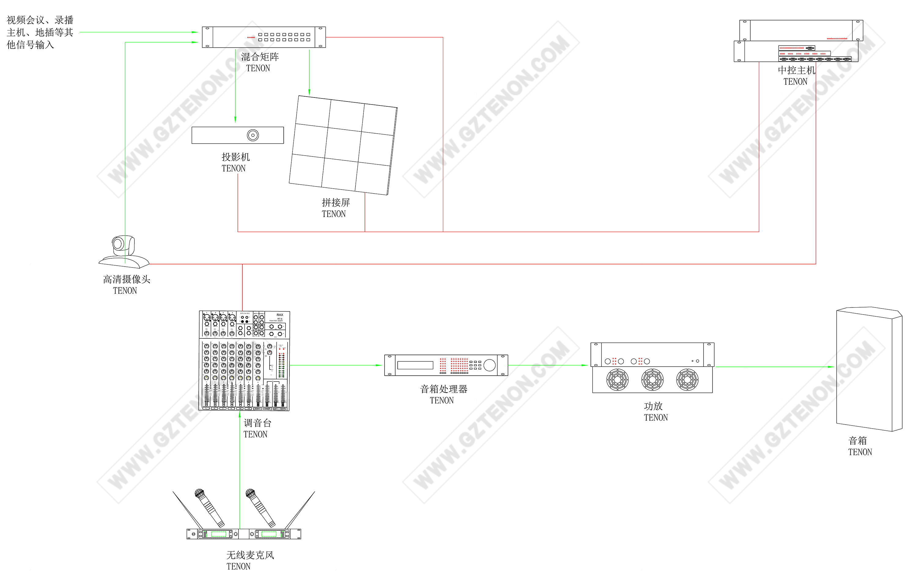 1.本系統(tǒng)可對會(huì)議室內(nèi)各種音視頻設(shè)備及燈光、電動(dòng)窗簾、電動(dòng)投影幕、電動(dòng)升降吊架等設(shè)備采用集中控制方式,以方便操作和使用。